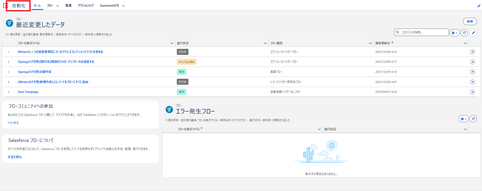 標準アプリケーションに「自動化」が追加され、Salesforce内の自動化を管理できる複数のメニューが統合されました。
