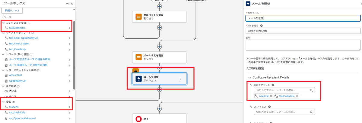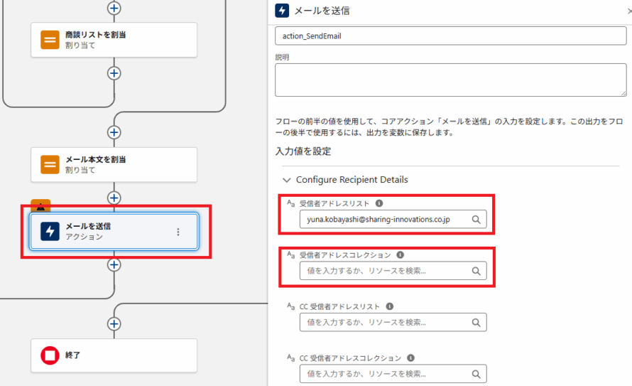 フローのメール送信アクションで、受信者アドレスに単一のメールアドレスとコレクション(複数のメールアドレス)を同じ項目で管理できるようになりました。