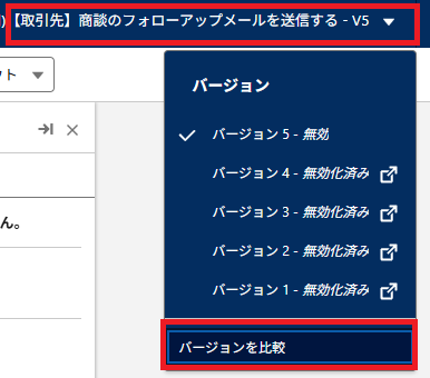 Salesforceフローの設定画面上から、フロー名を開くと「バージョンを比較」というものがでてくるようになりました。