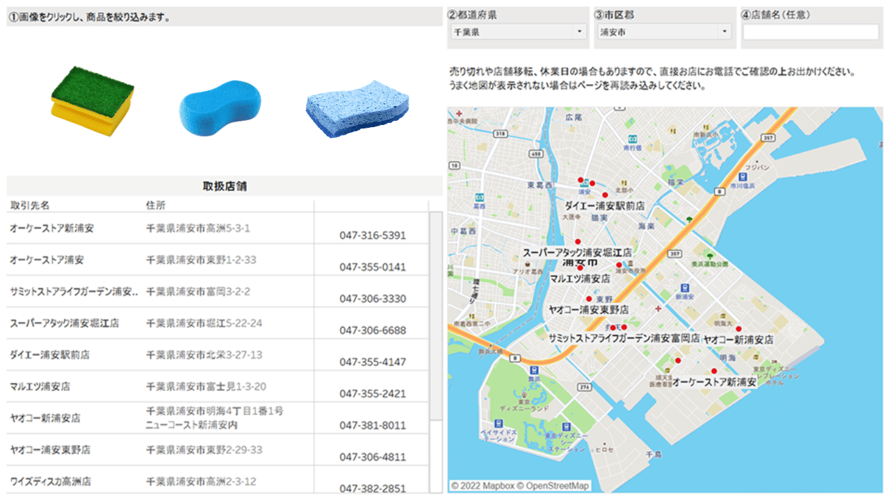 顧客が自ら探せるダッシュボードを公開しました。これにより、顧客自身も商品を検索し、販売店舗を確認できる仕組みが整いました。